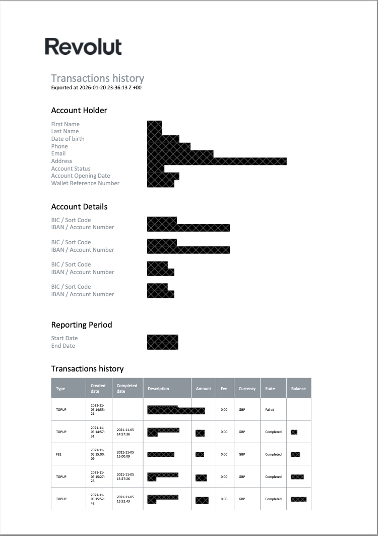 Send email : Dear Revolut DPO, I would like a copy of the following personal information that you hold about me, and which I have a right to view under the Data Protection Act and General Data Protection Regulation (2018): all the information you held about me from the opening of my account on 05/11/2021. If you need any further information from me, please let me know as soon as possible. I would like you to contact me on this email. I would prefer if you sent me a copy of my data in electronic format. I would like to remind you that data protection law requires you to respond to my request within one month. Please can you confirm that you have received and read this request? Thank you, Anna Finch + answer with Please provide the following information to verify your identity: - Your full name - Date of birth - The phone number associated with your account